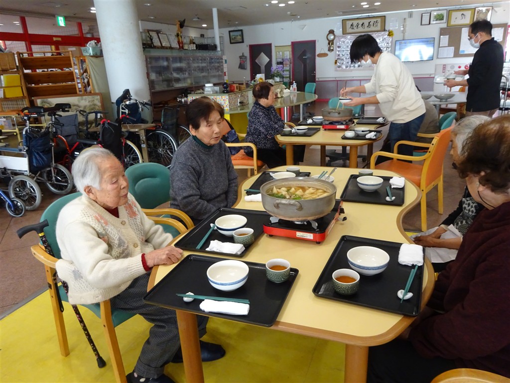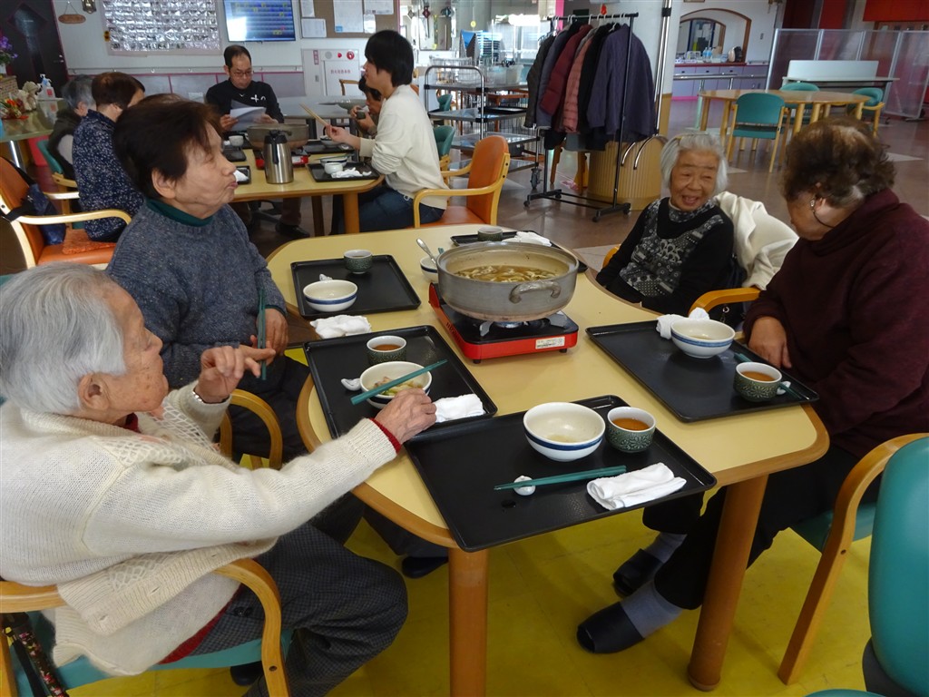 2026.01.17 今月のゆうゆうくらぶ ゆうゆうくらぶ鍋で新年会、初詣 今年は雪の幕開けとなりました。 新年最初のゆうゆうくらぶは、昼食にきりたんぽ鍋を囲んで新年会を行いました。「とても美味しいです。」「初めてきりたんぽ鍋を食べました。」と皆さん大満足でお腹も満腹なり、身体も温まりました。 午後は天気も良く出石神社まで初詣に出掛け、皆さん思い思いのお願いをされていました。 1月17日のご様子です